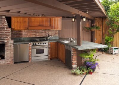 • Designing the layout of the countertops to fit the specific outdoor kitchen space.
